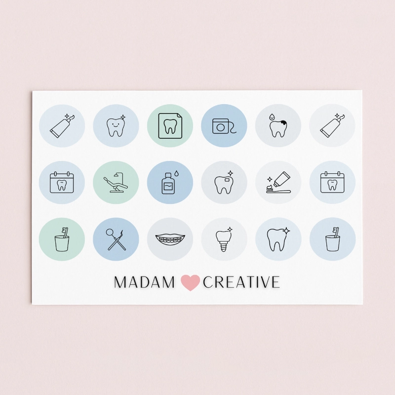 Naklejki Ikony Funkcyjne do Planera i Bullet Journal Dentysta Stomatologia 13x9 MaDam Creative