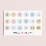 Naklejki Ikony Funkcyjne do Planera i Bullet Journal Opieka nad Dzieckiem Minimal 13x9 MaDam Creative