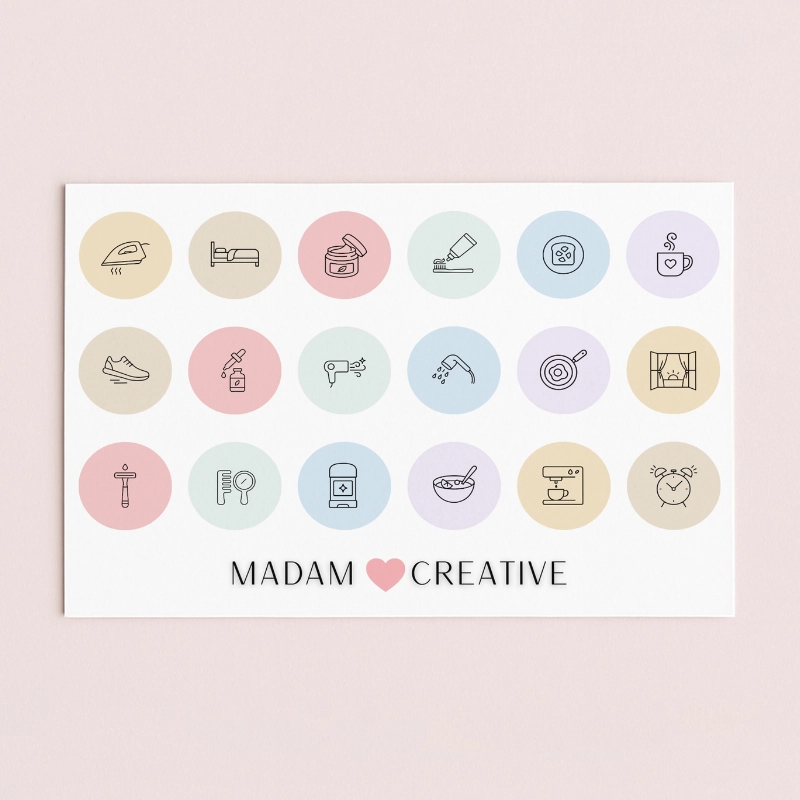Naklejki Ikony Funkcyjne do Planera i Bullet Journal Poranna Rutyna Cozy 13x9 MaDam Creative
