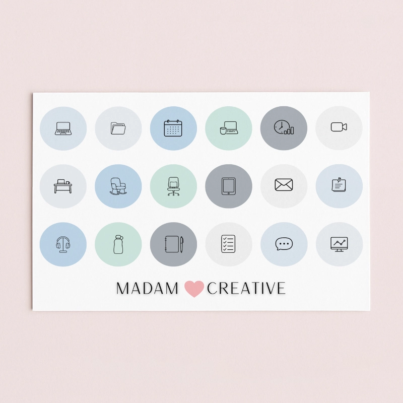 Naklejki Ikony Funkcyjne do Planera i Bullet Journal Praca Zdalna Online Biznes 13x9 MaDam Creative
