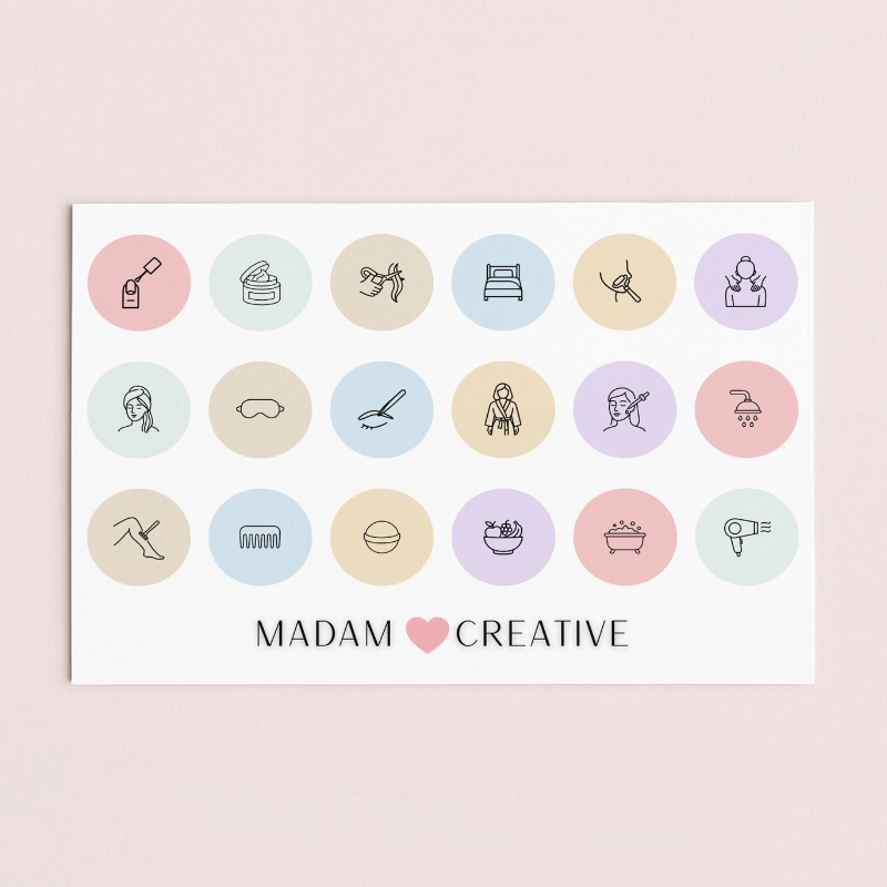 Naklejki Ikony Funkcyjne do Planera i Bullet Journal Self Care Wellness i Uroda 13x9 MaDam Creative