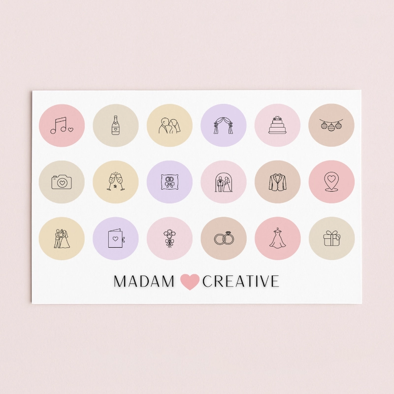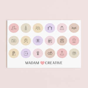 Naklejki Ikony Funkcyjne do Planera i Bullet Journal Ślub Romantyczny 13x9 MaDam Creative