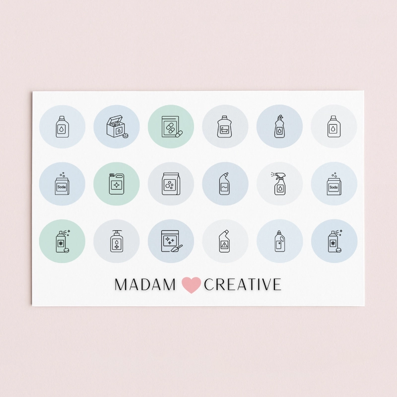 Naklejki Ikony Funkcyjne do Planera i Bullet Journal Sprzątanie Domowe 13x9 MaDam Creative