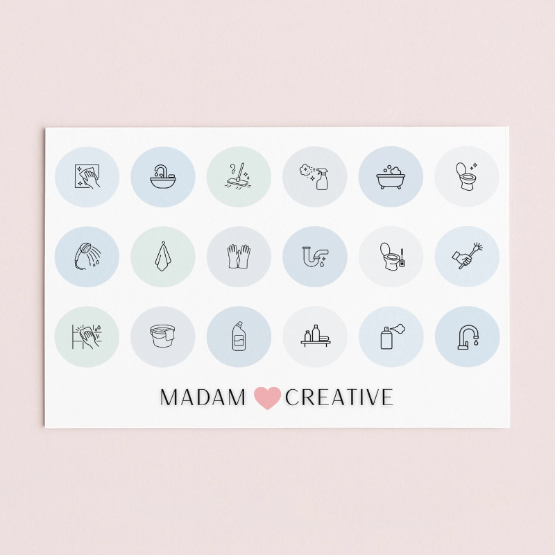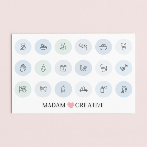 Naklejki Ikony Funkcyjne do Planera i Bullet Journal Sprzątanie Łazienki Minimal 13x9 MaDam Creative