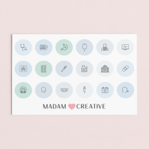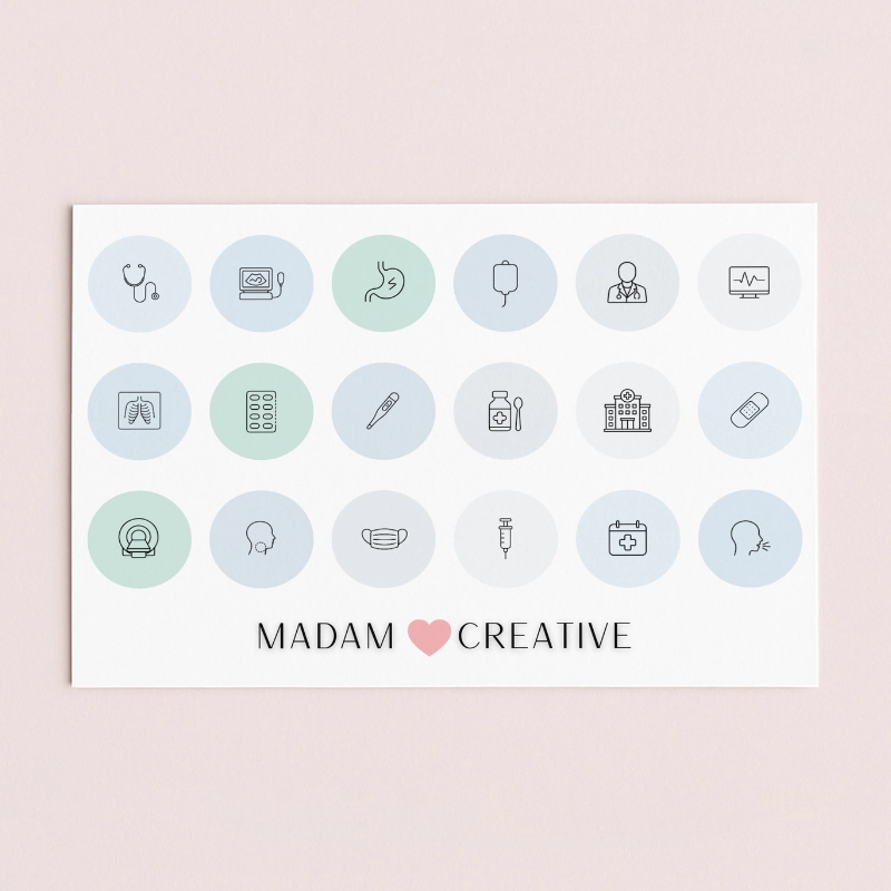 Naklejki Ikony Funkcyjne do Planera i Bullet Journal Szpital Medycyna Choroba 13x9 MaDam Creative