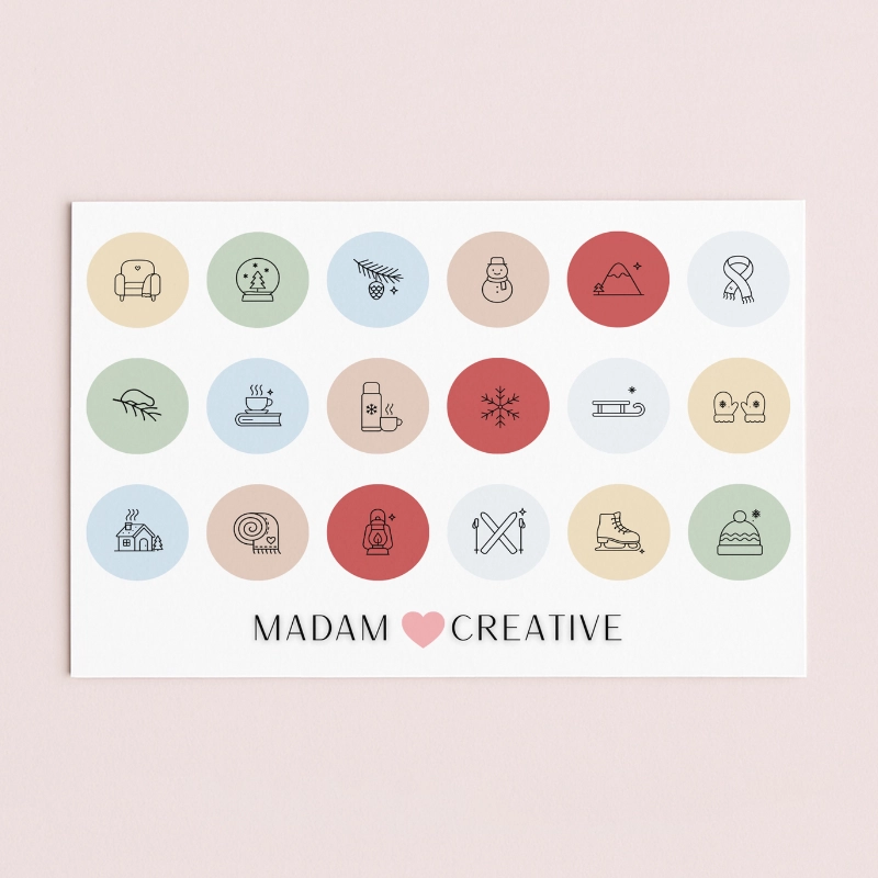 Naklejki Ikony Funkcyjne do Planera i Bullet Journal Zima Cozy Święta 13x9 MaDam Creative