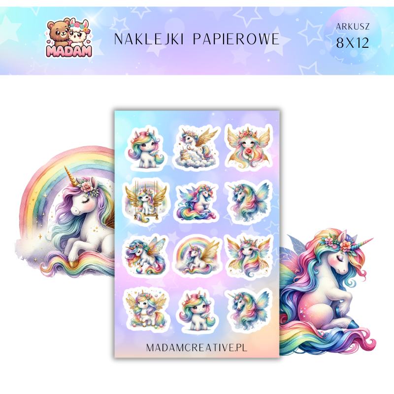 Naklejki Papierowe MaDam 8x12 - Jednorożce na Tęczy - Bo tęcza i jednorożce to połączenie idealne!