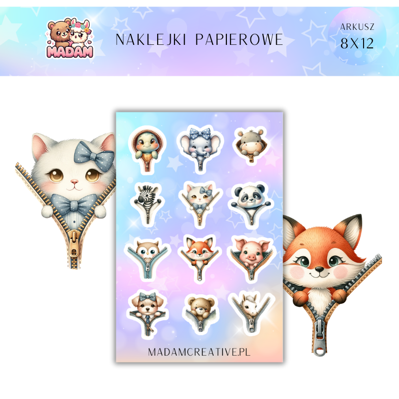 Naklejki Papierowe MaDam 8x12 - Radosne Zwierzątka - Te liski i kotki skaczą prosto do Twojego serca!