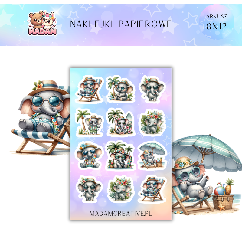 Naklejki Papierowe MaDam 8x12 - Słonie na wakacjach - All Inclusive!