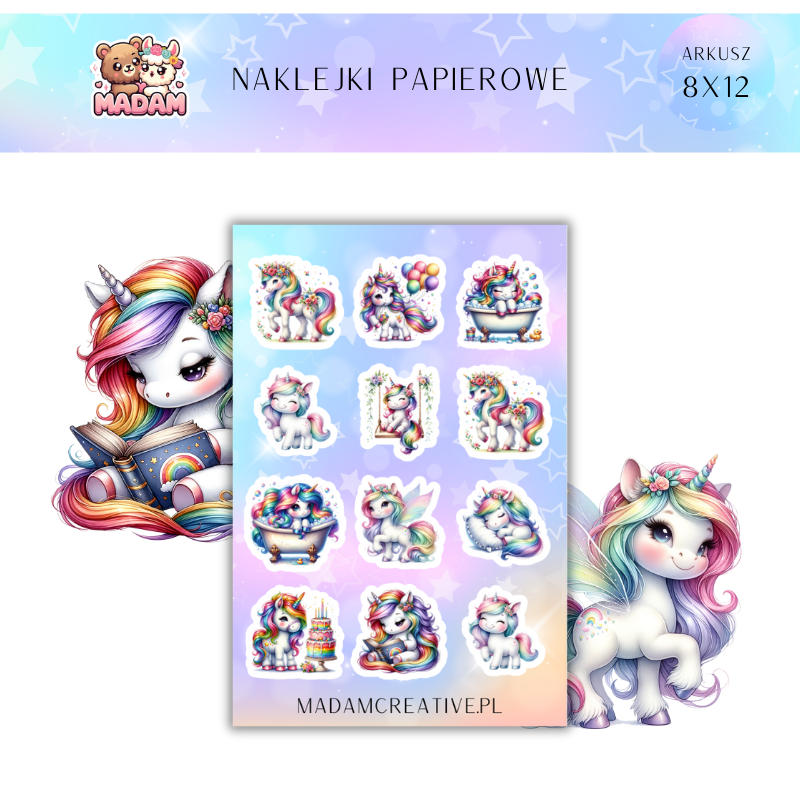 Naklejki Papierowe MaDam 8x12 - Tęczowe Jednorożce - Magia tęczy i jednorożców na wyciągnięcie ręki!