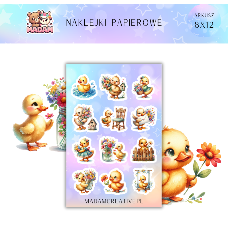 Naklejki Papierowe MaDam 8x12 - Wesołe Kaczuszki - Kacze przygody na każdą kartkę!