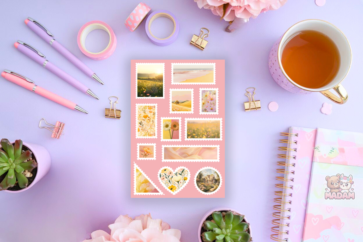 Naklejki znaczki pocztowe żółta wiosna marki MaDam Creative to arkusz 13 × 19 cm pełen unikalnych ilustracji. Sprawdzą się w bullet journali, plannerach, scrapbookingu, kartkach i albumach. Wykonane z wysokiej jakości papieru matowego, posiadają mocny klej, który osiąga pełną przyczepność po 24 h.