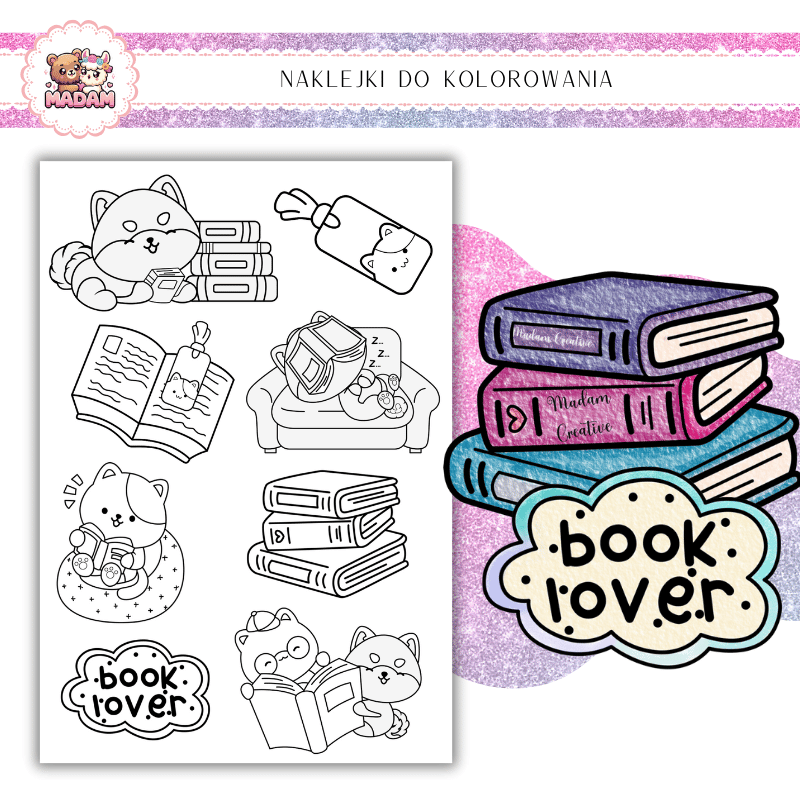 Naklejki do Kolorowania dla Dzieci 13x19 Książki 13x19, MaDam Creative