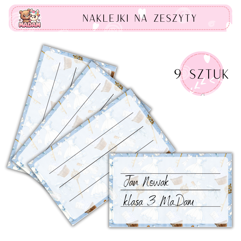 Naklejki na zeszyty – naklejki opisowe MaDam Creative (zestaw 9 sztuk)