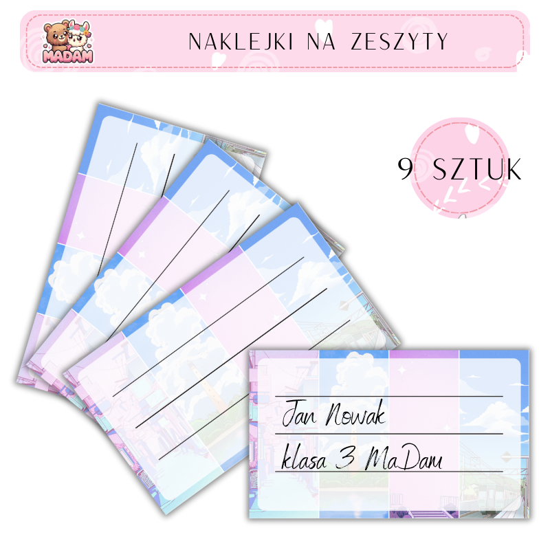 Naklejki na zeszyty – naklejki opisowe MaDam Creative (zestaw 9 sztuk)