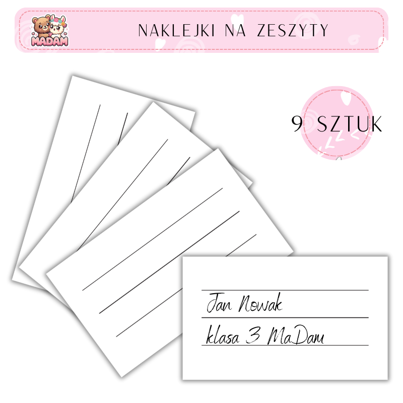 Naklejki na zeszyty – naklejki opisowe MaDam Creative (zestaw 9 sztuk)