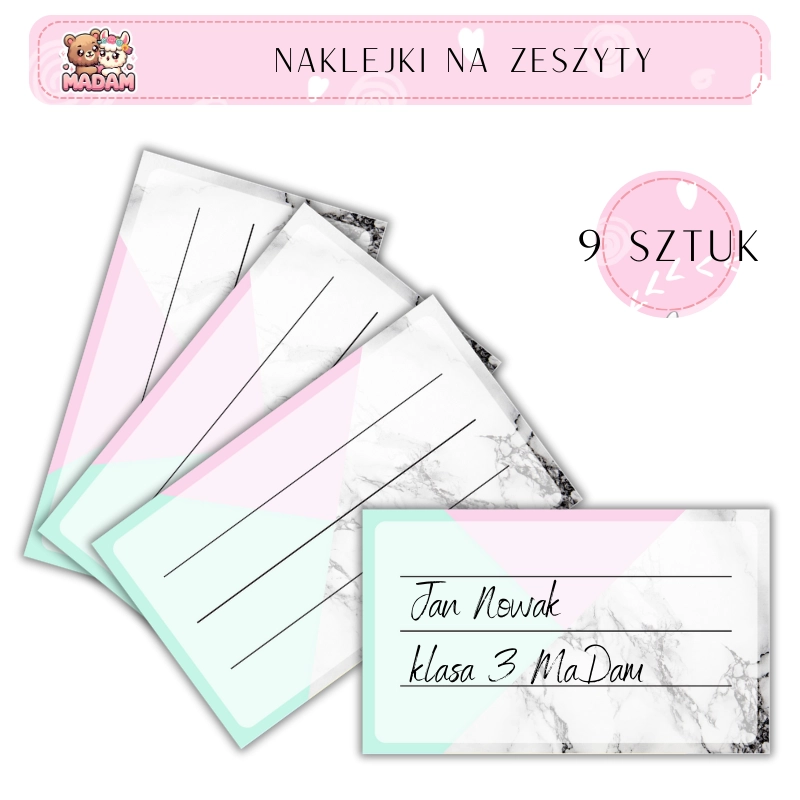 Naklejki do opisywania na zeszyty Marmur 9 sztuk, MaDam
