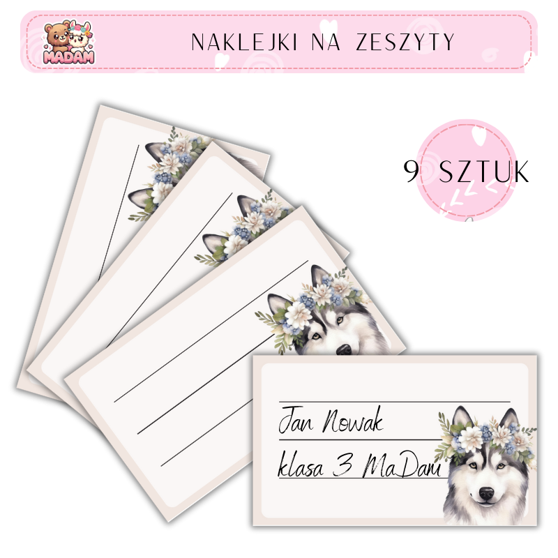 Naklejki do opisywania na zeszyty Pies 9 sztuk, MaDam