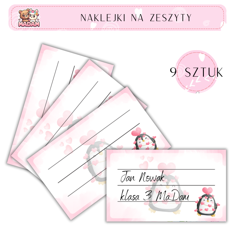 Naklejki do opisywania na zeszyty Pingwin 9 sztuk, MaDam