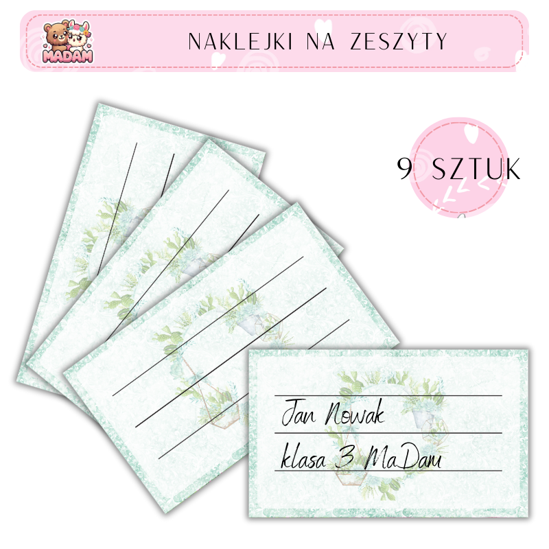 Naklejki do opisywania na zeszyty Sukulent 9 sztuk, MaDam