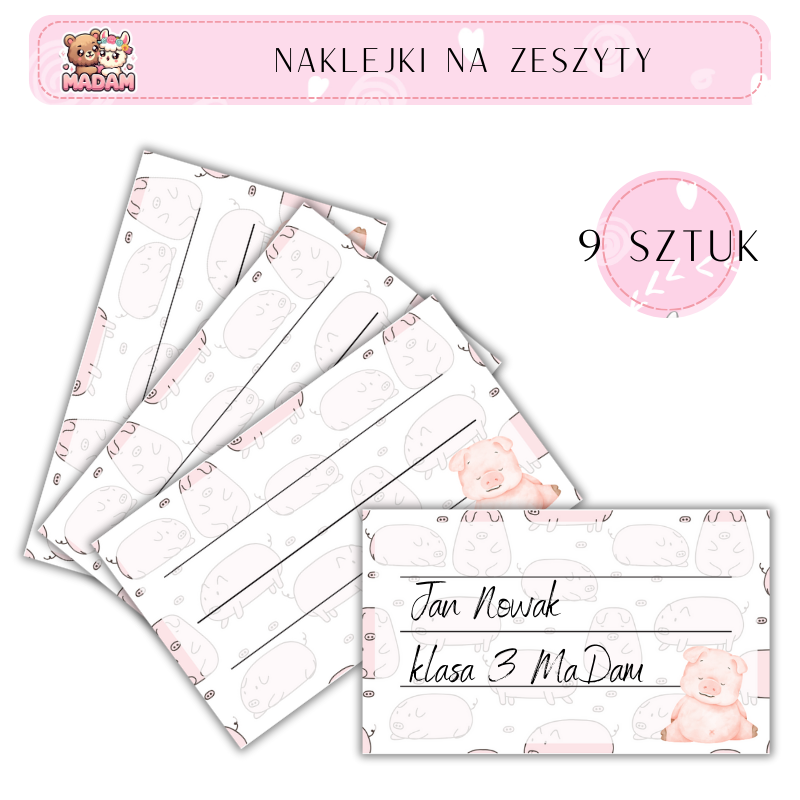 Naklejki do opisywania na zeszyty Świnka 9 sztuk, MaDam