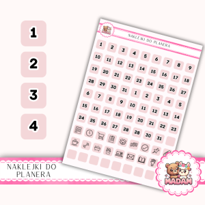 Naklejki do planera Dni Miesiąca i Ikony 13×18 – Pastelowy Róż – MaDam Creative