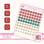 Naklejki do planera Dni Miesiąca i Ikony 13×18 – Świąteczny Mix Kolorów – MaDam Creative