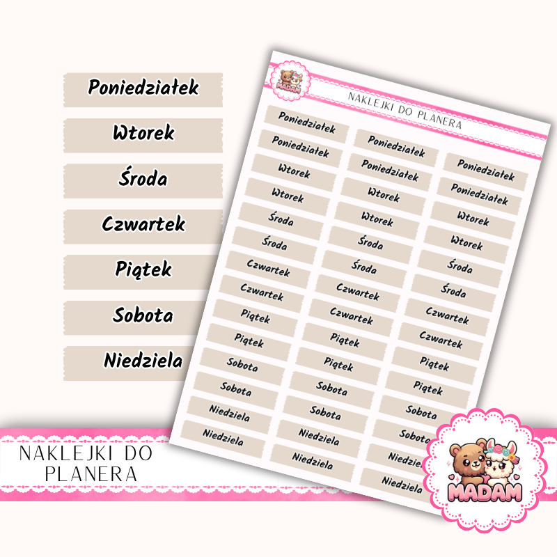 Naklejki do planera Dni Tygodnia 13×18 – Beż Taupe – MaDam Creative