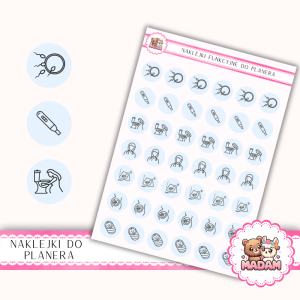 Naklejki do planera Ikony Funkcyjne Ciąża: Test, Lekarz i Pierwsze Wizyty 13×18 Błękit Nieba – MaDam Creative