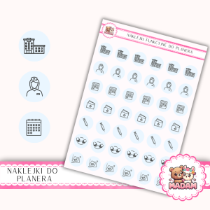 Naklejki do planera Ikony Funkcyjne Ciąża i Wizyty Lekarskie 13×18 – kontrole, USG Błękit Kryształowy – MaDam Creative