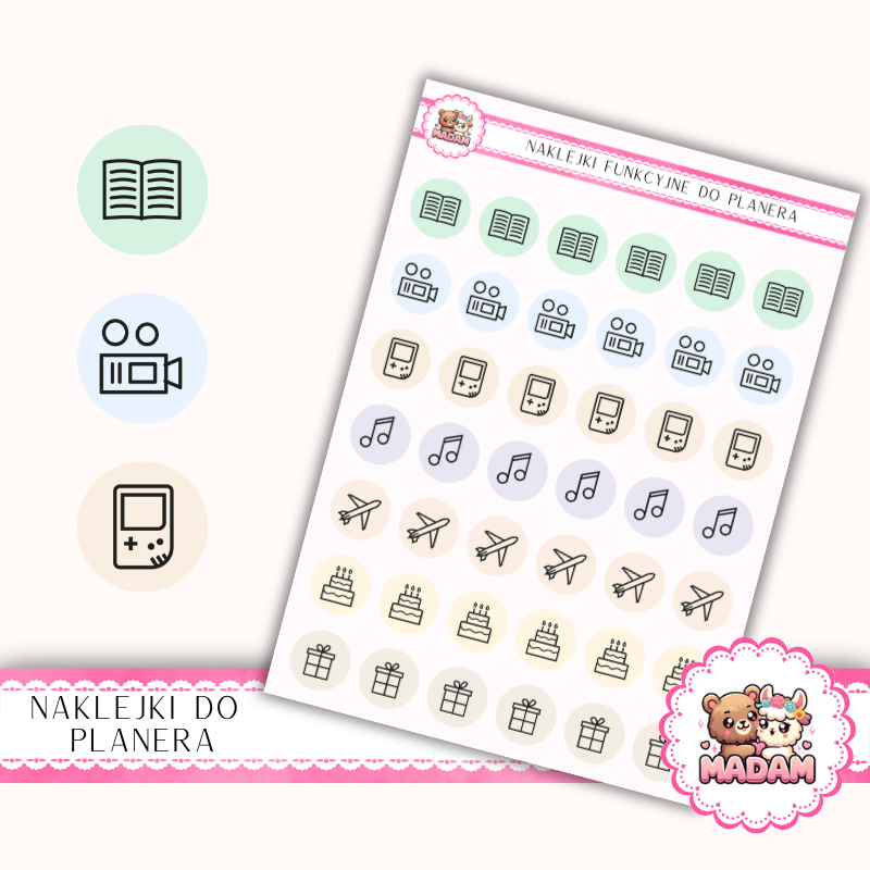 - Typ produktu: Naklejki do planera samoprzylepne (arkusz)