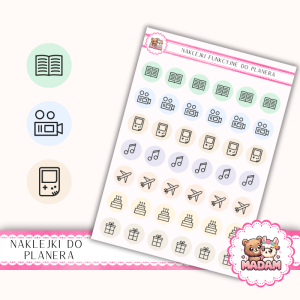 Naklejki do planera Ikony Funkcyjne Czas Wolny i Hobby 13×18 – książki, rozrywka MIX – MaDam Creative
