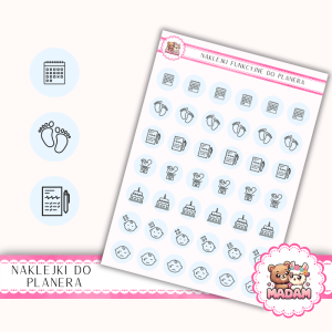 Naklejki do planera Ikony Funkcyjne Dokumenty i Kamienie Milowe 13×18 – baby milestones Błękit Kryształowy – MaDam Creative