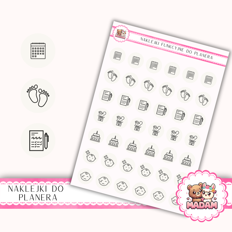 Naklejki do planera Ikony Funkcyjne Dokumenty i Kamienie Milowe 13×18 – baby milestones Kość Słoniowa Jasna – MaDam Creative