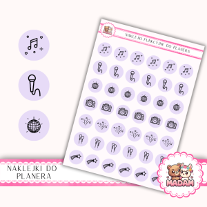 Naklejki do planera Ikony Funkcyjne Muzyka, Zabawa i Atrakcje 13×18 – DJ, dance Lawenda Pastelowa – MaDam Creative