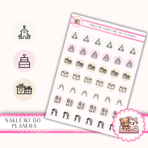 Naklejki do planera Ikony Funkcyjne Organizacja Ślubu i Wesele 13×18 MIX neutral – MaDam Creative