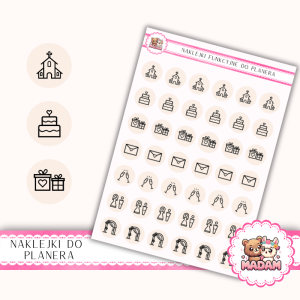 Naklejki do planera Ikony Funkcyjne Organizacja Ślubu i Wesele 13×18 Nude Romantyczny – MaDam Creative