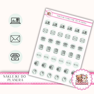 Naklejki do planera Ikony Funkcyjne Praca i Organizacja 13×18 – spotkania, projekty Szałwiowa Szarość – MaDam Creative