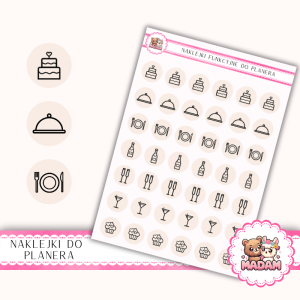 Naklejki do planera Ikony Funkcyjne Przyjęcie i Catering 13×18 – tort, menu, toast Beż Delikatny – MaDam Creative