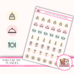 Naklejki do planera Ikony Funkcyjne Przyjęcie i Catering 13×18 – tort, menu, toast MIX – MaDam Creative
