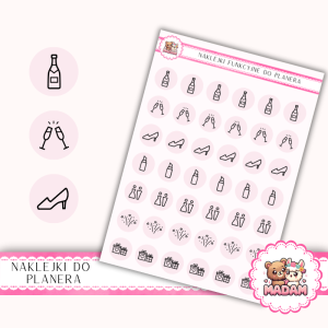Naklejki do planera Ikony Funkcyjne Wieczór Panieński i Świadkowa 13×18 Róż Jasny – MaDam Creative