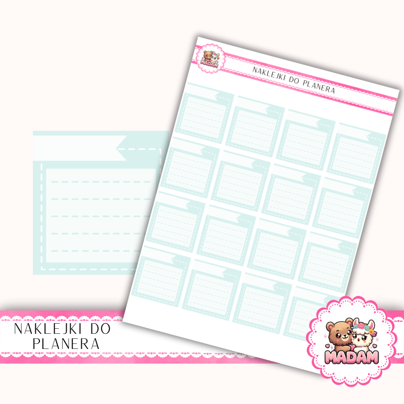 Naklejki do planera Mini Notatki Boxy Lined 13×18 – Miętowe – MaDam Creative