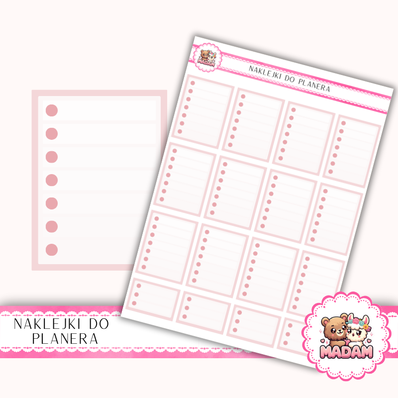 Naklejki planerowe MaDam Creative zostały stworzone z myślą o osobach, które chcą planować skuteczniej i czytelniej. Sprawdzają się zarówno w codziennych notatkach, jak i w długoterminowym planowaniu tygodnia czy miesiąca. Dzięki nim łatwiej wyróżnisz ważne zadania, uporządkujesz sekcje w planerze i nadasz swoim stronom spójny wygląd.