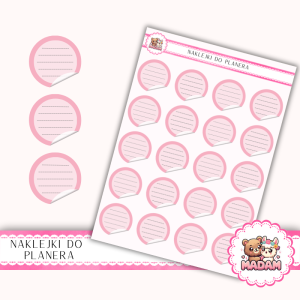 Naklejki do planera etykiety kółka różowe 13x18 , Bullet Journal MaDam Creative