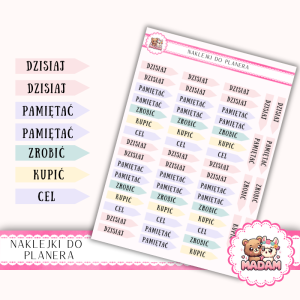 - Typ produktu: Naklejki do planera samoprzylepne (arkusz)