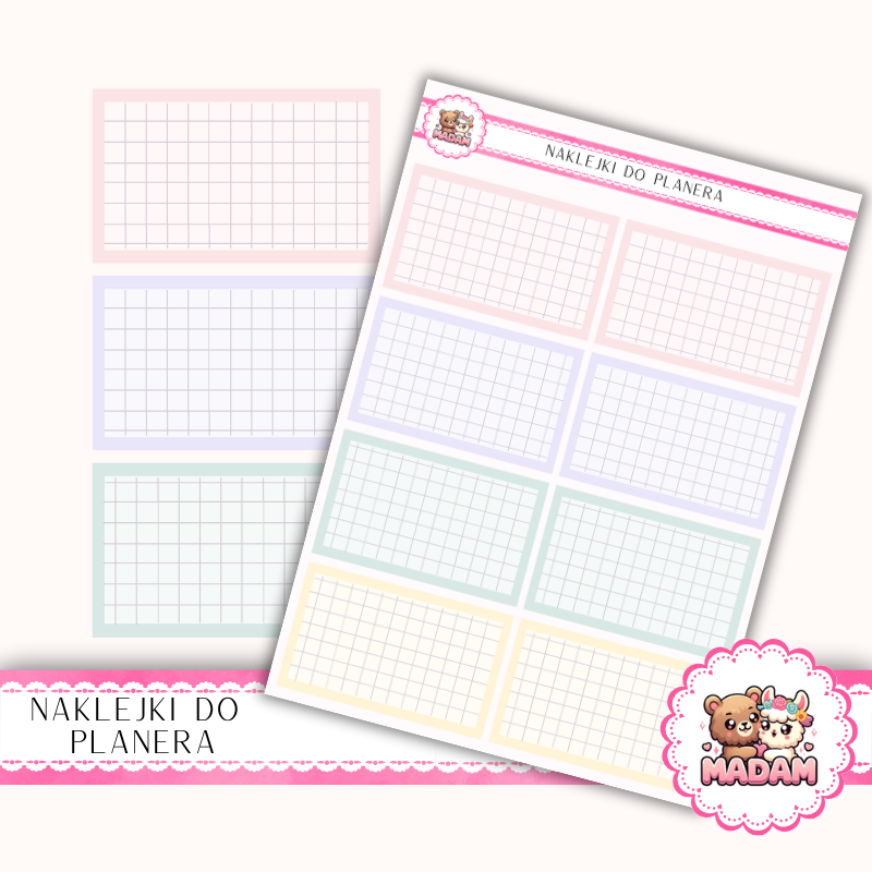 Naklejki do planera karteczki w kratkę Pastel Love 13x18 , Bullet Journal MaDam Creative