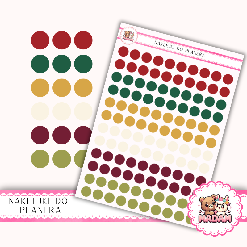 Naklejki do planera kółka 10 mm MIX Boże Narodzenie 13×18 MaDam Creative