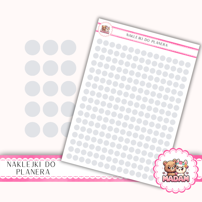 Naklejki do planera kółka 6 mm Szary Taupe 13×18 MaDam Creative