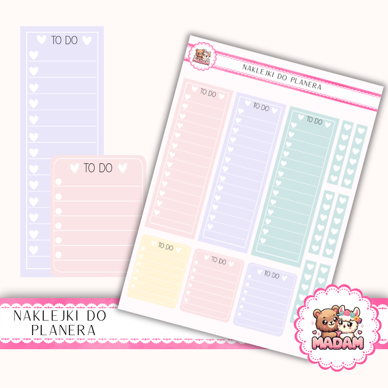 Naklejki do planera listy To Do serduszka pastelowe Pastel Love 13x18 , MaDam Creative