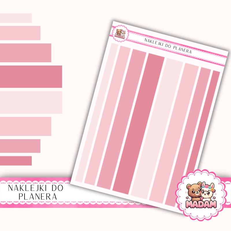 Naklejki do planera paski blush pink gradient 13x18 , Bullet Journal MaDam Creative